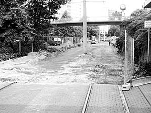 Unmittelbar ab der Haltestelle Stadtpromenade enden die Gleisen