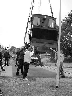 angereist und wurden per Kran auf die 600-Millimeter-Schiene gehieft.