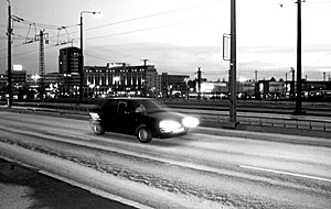 (tr). Unablässig strömt der Verkehr durch die vierspurige