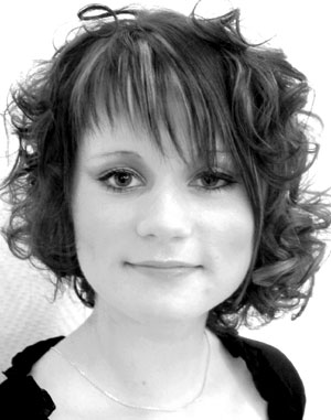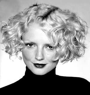 Mandy trägt Locken und asymatrischen Ponny