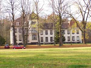 Schloss und Park sind über die Straße in Richtung Steinitz
