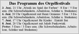 Innerhalb des Orgelfestivals sind - wie in jedem Jahr - Künstler