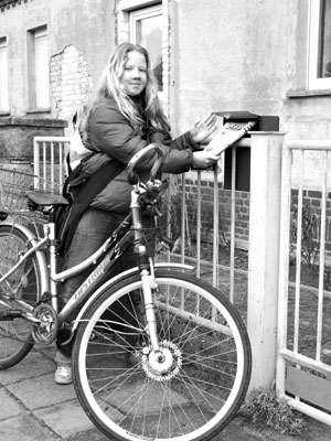 die junge Austrägerin, die nun oft bis 15 Uhr unterwegs ist.
