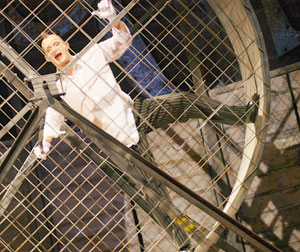 Kai Börner als Macheath dekorativ abstrampelt. Ein solches