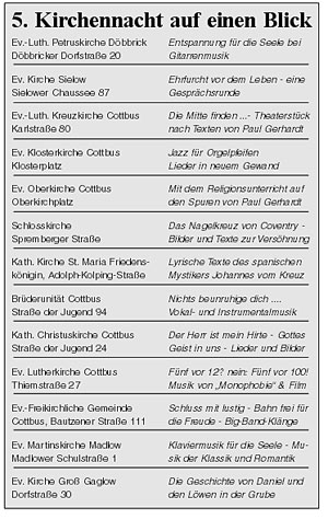 der offenen Kirchen in Cottbus. Alle teilnehmenden Kirchgemeinden