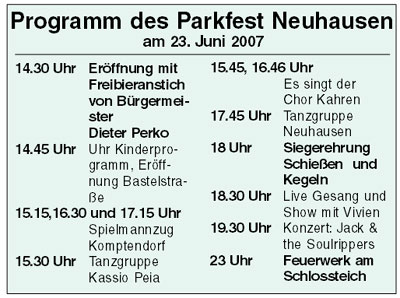 beweißt das umfangreiche Programm des inzwischen 34. Parkfestes,
