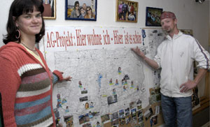 drei Quadratmeter große Projekttafel dazu, die Sozialarbeiterin