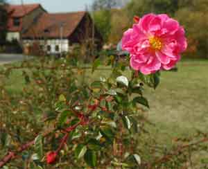 letzten Wilden Rosen bringen Farbe auf die Insel an der Spreewehrmühle.