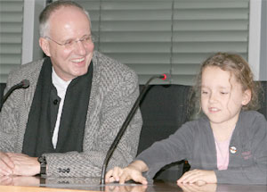 Reiche Chefin im Plenum: Die achtjährige Janine drückte