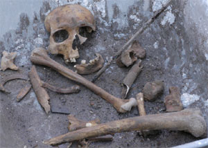Knochen und metallische Überbleibsel wurden aus dem Schutt