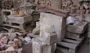 eher wie Schutt aussieht, ist das einstige Taufbecken mit Sockel