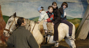 von vielen neuen Show-Elementen. Unten: Zu viert auf dem Pferd