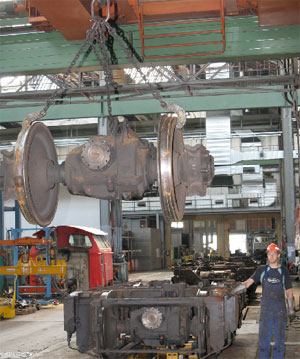 Lehnik hat hier vier Tonnen am Haken. Die Radsätze werden