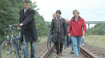 merkwürdige Wandergesellschaft. Aber das Gleis ist stillgelegt.