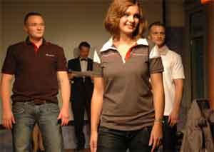Gästen. Ob gekonnte Modenschau von Lehrlingen des Unternehmens