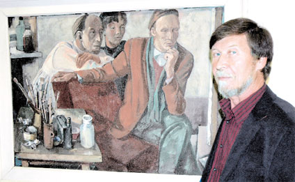 Wendt vor dem Bild Atelierbesuch, das sein Vater 1960