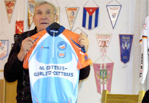 aktivitäten Eberhard Pöschke zeigt hier ein Trikot zum