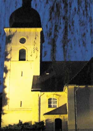 angestrahlt - die Sielower Kirche in der Adventszeit. Am Freitag