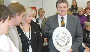 Friese am Montag stolz die silberne Plakette als wirtschaftsfreundlichste