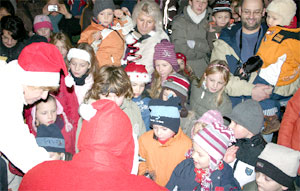 der Dunkelheit erwartete eine aufgeregte Kinderschar den Weihnachtsmann,