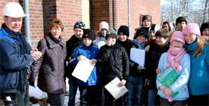 Pursche erklärt den künftigen Nutzern ihr Haus. Klasse