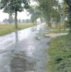 keinen Rad- und Fußweg, von einer Fahrbahnmarkierung ganz
