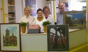 und Postkarten für das Infozentrum zum Verkauf. Ebenfalls