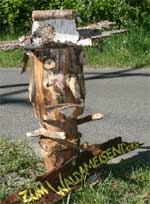Holzfigur mit dem Hinweis Waldameisendorf. Nach wenigen