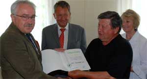Vorsitzender des Kreisverbandes der Kleingärtner, die Urkunde