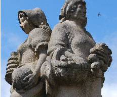und Baumkuchenfrau auf dem 1988 bis 1991 entstandenen Marktbrunnen