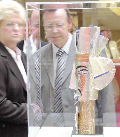(v.l.). Im Mittelpunkt der Ausstellung in der Hauptsparkasse am