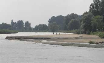 die während der Hochwasser riesige Sandbänke bildeten,