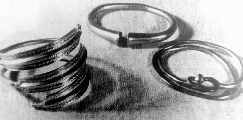 Armringe aus massivem Gold, die 1934 beim Flugplatzbau am nördlichen