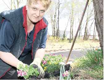 Kliesch setzt Petunien, die der toom-Gartenmarkt Groß Gaglow