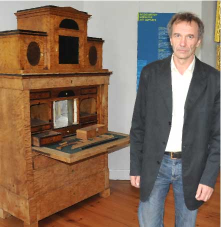 Willy Thiel an einem Biedermeier-Sekretär in der aktuellen