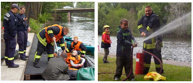 und Wasserzielspritzen mit der Feuerwehr, auch Schlauchbootfahrten