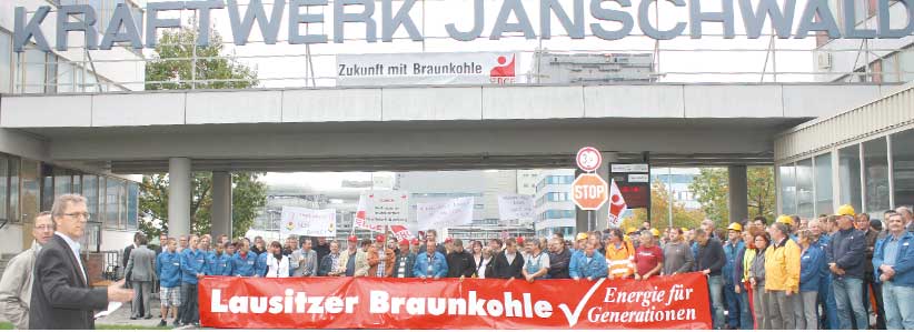 zeigten Mitarbeiter aus dem Kraftwerk und dem Tagebau Flagge.