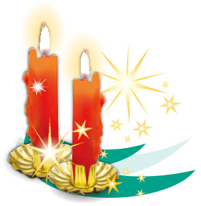 mit Englein und natürlich einem Weihnachtsbaum mit Kerzen,