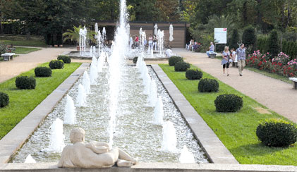 Die zentrale Springbrunnenanlage, deren Fontänenspiel