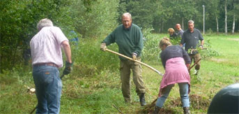 Zurichten der Wiese half letzte Woche ein gewordener Bayer: Hermann