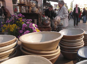 den begehrten Tellern, Tassen und Schüsseln wird der Töpfermarktbesucher