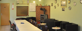 Und auch eine Sitzecke am warmen Öfchen. Der Dorfladen