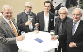 gewählt wurde, im Kreise von Cottbuser Geschäftspartnern: