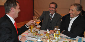 (SPD) mit Wein und Bier auf die glücklich termin- und kostengerecht