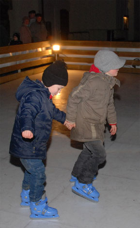 eine Kindereisbahn mit Schlittschuhausleih, Rikscha-Fahrten durch