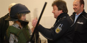 gegen Angreifer zu wehren. Foto unten: Bei einer nachgestellten