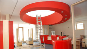 auch nach innen ragt und scheinbar mit dem Beratungstresen verschmelzend,