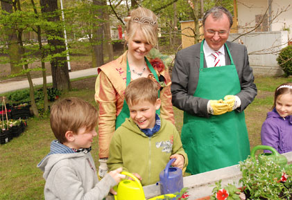 und der Bürgermeister bewiesen grünen Daumen in gelbem