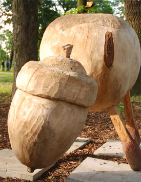 16 Skulpturen aus Kastanien entstanden beim 1. Kunstsymposium