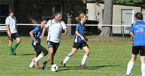 Achim Wank zum Mitspielen in der Frauenmannschaft ein. Trainiert